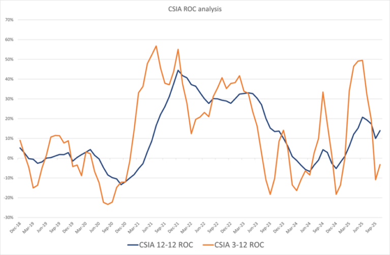 The CSIA ROC implies the SI industry would benefit from more capital goods orders in automation-related spending. With upward pressure from the 3/12, current indications suggest a steady progression throughout 2026.